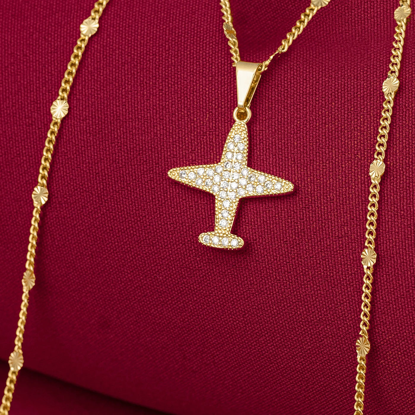 Mini dije en forma de avión con circonias blancas incrustadas al frente. Un símbolo perfecto para espíritus viajeros y amantes de la aviación.
