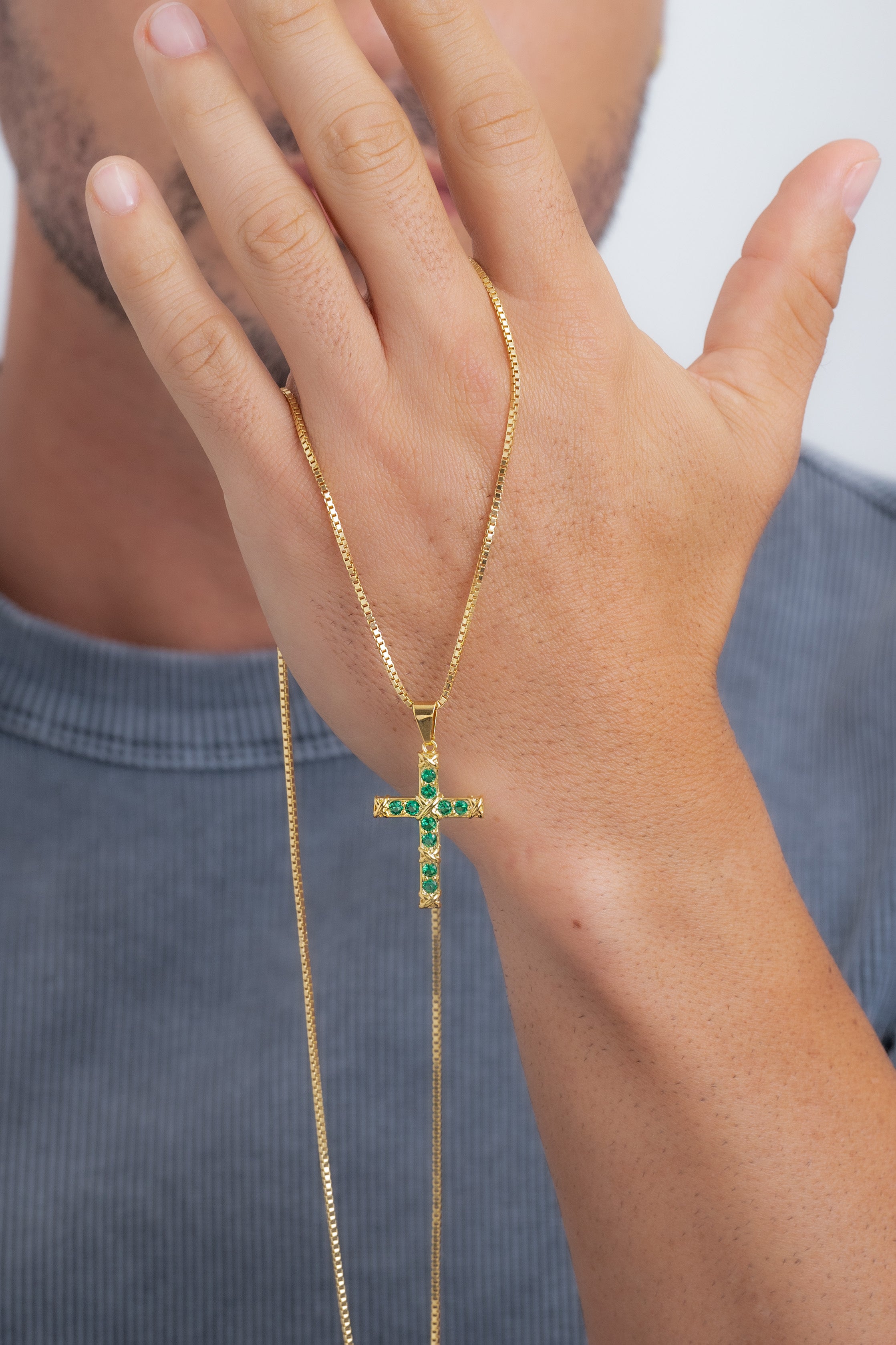 Cruz clásica con detalle de garritas en “X” que abrazan cada piedra, creando un look elegante y llamativo.